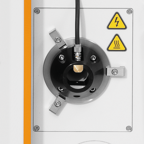 The sample is placed in front of the furnace opening and the measurement is started in the software. Subsequently, the shutter opens, and the material can be introduced into the hot furnace. At the same time, the ELEMENTS software continuously records measured values during combustion. Closing the furnace during the measurement is optional and can improve reproducibility.