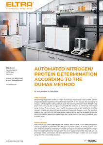 - Automated nitrogen / protein and carbon determination using the Dumas method