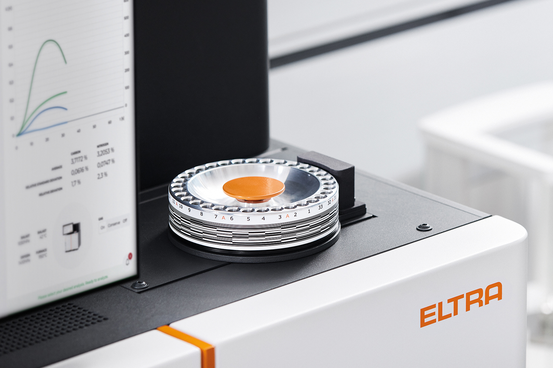 The innovative autosampler of the ELEMENTRAC CN-r ensures clear sample identification, preventing mix-ups even in a busy laboratory environment and making it easier to handle a large number of samples.